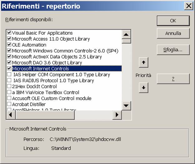 RRepertorio presuppone le seguenti librerie in Office 2003 o equivalenti per le precedenti versioni di Office:
